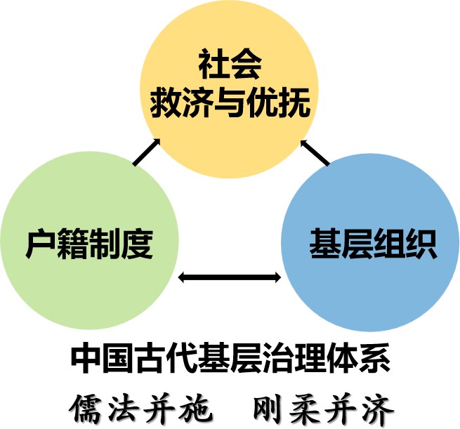 户籍管理和基层组织构建是中国古代统一多民族封建国家获取赋役资源、实现基层治理的重要手段。为进一步维护基层社会的稳定,封建国家通过积谷备仓、优待贫老等形式实施社会救济与优抚。宋朝以后,宗族等社会力量亦在社会救济与优抚中扮演重要角色。户籍管理、基层组织构建及社会救济与优抚共同构成中国古代封建国家维护社会稳定、实现国家治理的基层治理体系,其背后蕴含的是儒法并施、刚柔并济的国家治理理念。