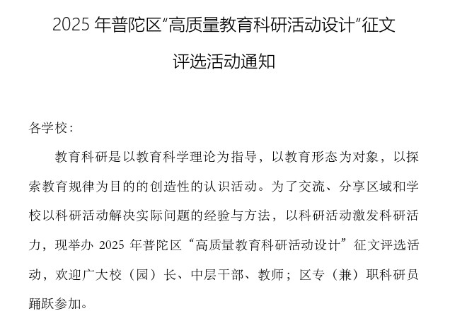 深耕院校合作,同绘科研新景——普陀区教育学院与普教院附中共同探索科研发展新路径