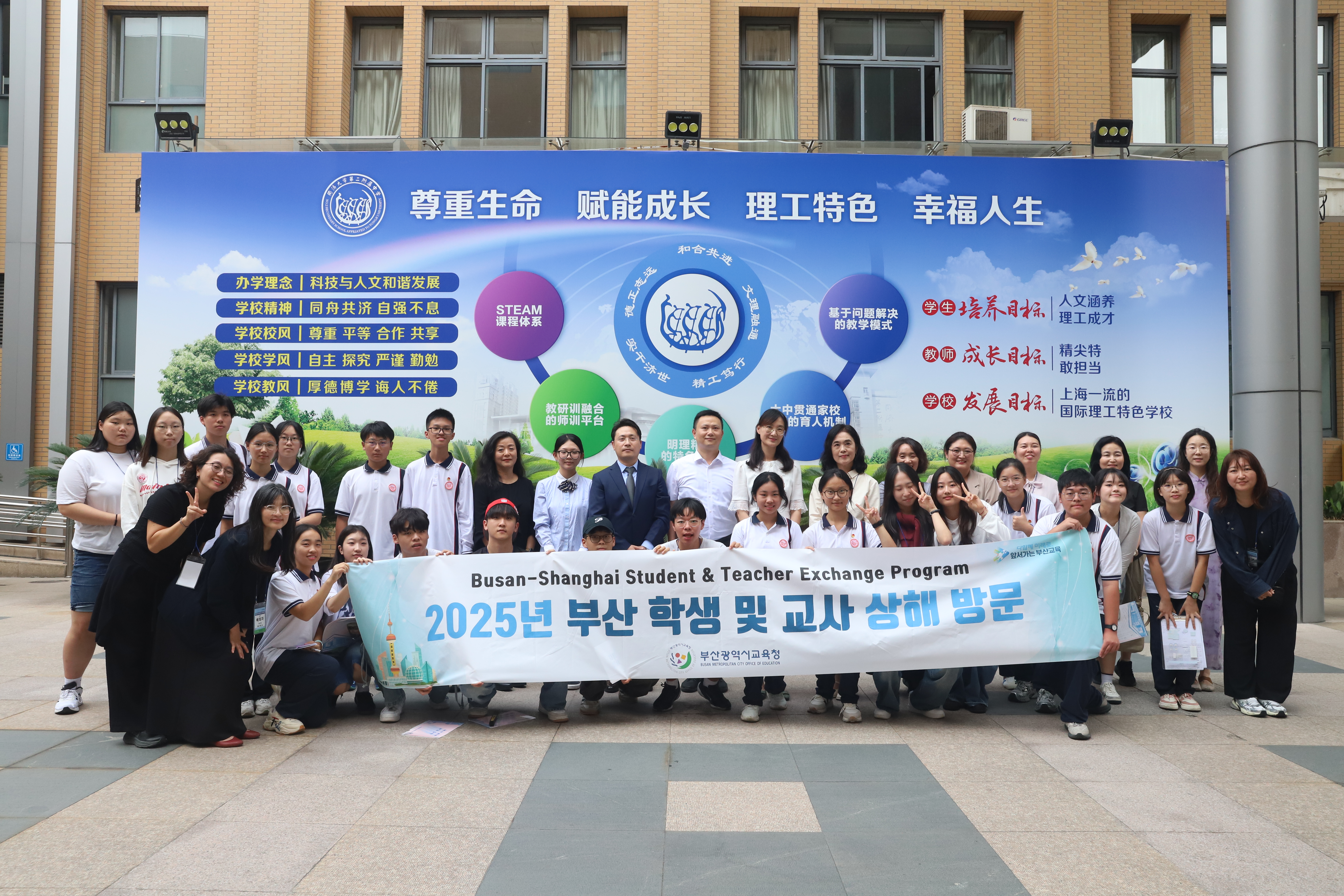 金秋十月,上海与釜山,两座依海而生、因港而兴的东方名城,再次以教育为纽带,携手续写友城交流的崭新篇章。2025年10月13日至17日,来自韩国釜山的师生代表团一行18人访问上海,走进同济大学第二附属中学与甘泉外国语中学,开展了为期五天的深度文化互动与教育交流。此次活动是上海与釜山自2002年签署教育友好交流协议以来,持续拓展合作内涵、增进青少年相互理解的生动体现。