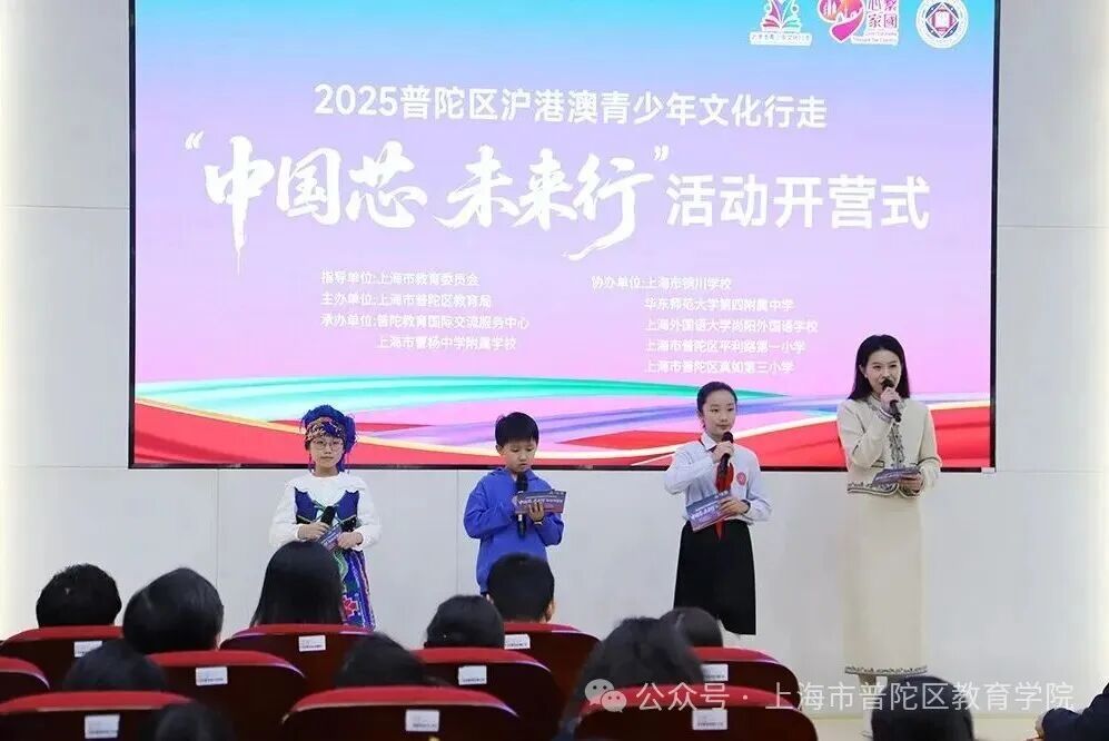 近日,以“中国芯 未来行”为主题的沪港澳青少年文化行走开营式在上海市曹杨中学附属学校举行。该活动由上海市教育委员会指导,普陀区教育局主办,普陀区教育学院国际交流服务中心、曹杨中学附属学校联合承办。