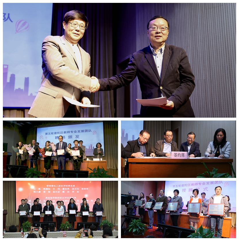 2018年11月7日下午,普陀区教师专业发展团队第四轮总结暨第五轮启动大会在曹杨二中附属学校隆重举行。普陀区人民政府副区长王珏、区相关委办局领导、区教育局和教育学院党政班子及相关科室负责人、全体专业人员、区教育系统基层单位党政正职干部和一直支持普陀教育的市级专家代表、第四轮团队代表和第五轮团队全体成员400多人参加了大会。会议由教育局党工委书记吴凌昱主持。