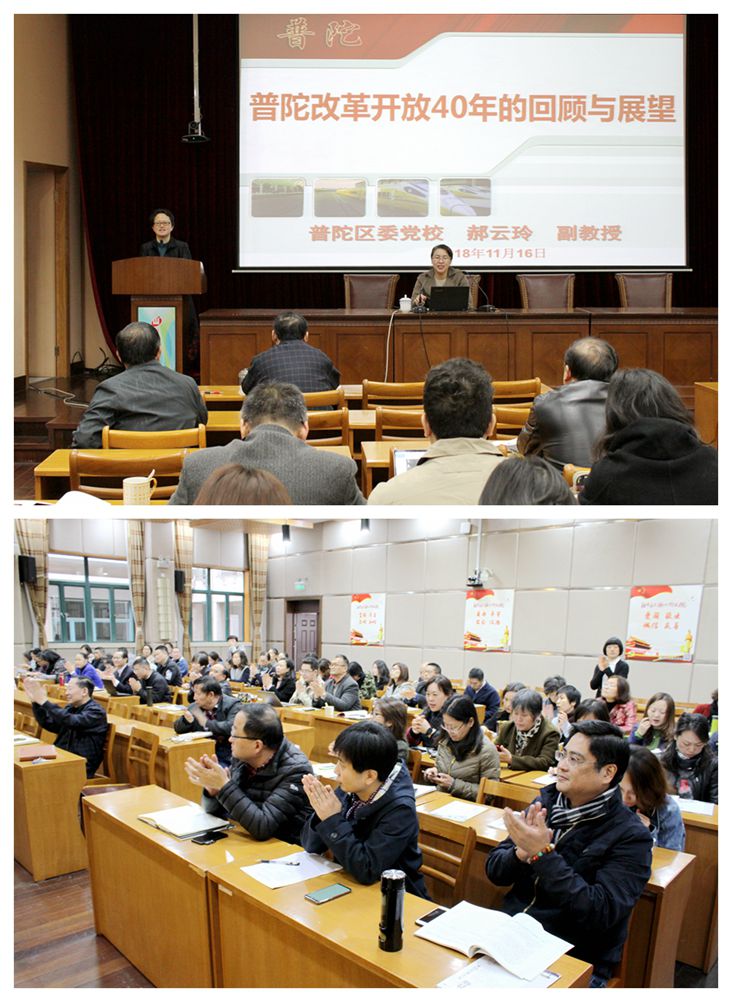 2018年是中国改革开放的第40个年头,40年来中国发生了翻天覆地的变化,中国人民砥砺奋进,用双手书写了国家和民族发展的壮丽史诗。为了使大家更加了解这40年来的变化与取得的成绩,11月16日下午,学院党总支开展“纪念改革开放40周年”系列活动,特邀普陀区委党校郝云玲副教授来学院作“普陀改革开放40年的回顾与展望”专题报告,带领大家共同回顾普陀的发展与变化。