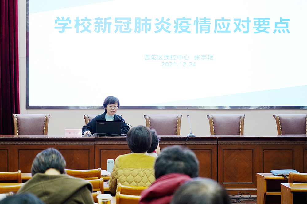 会议特邀普陀区疾控中心主任张宇艳作“学校新冠肺炎疫情应对要点学习”专题讲座,张宇艳从“传染病防控要素”“不同疫情状况下的应对措施”“疫情防控注意事项”三个方面,全面详细地讲解了学校内暂无疫情相关人员、工作人员接触过次密接人员、工作人员被判定为次密接、工作人员被判定为密接、工作人员被诊断为确诊病例等多种情况以及校园2天封闭管理的具体操作流程。